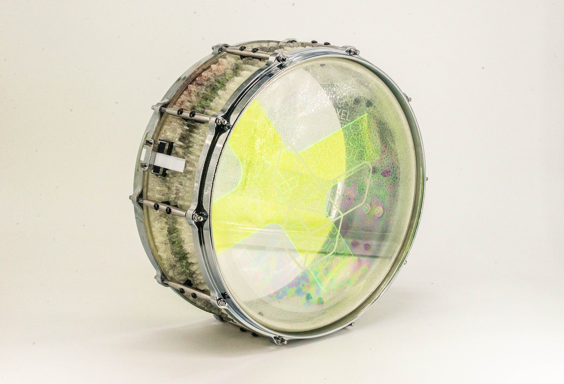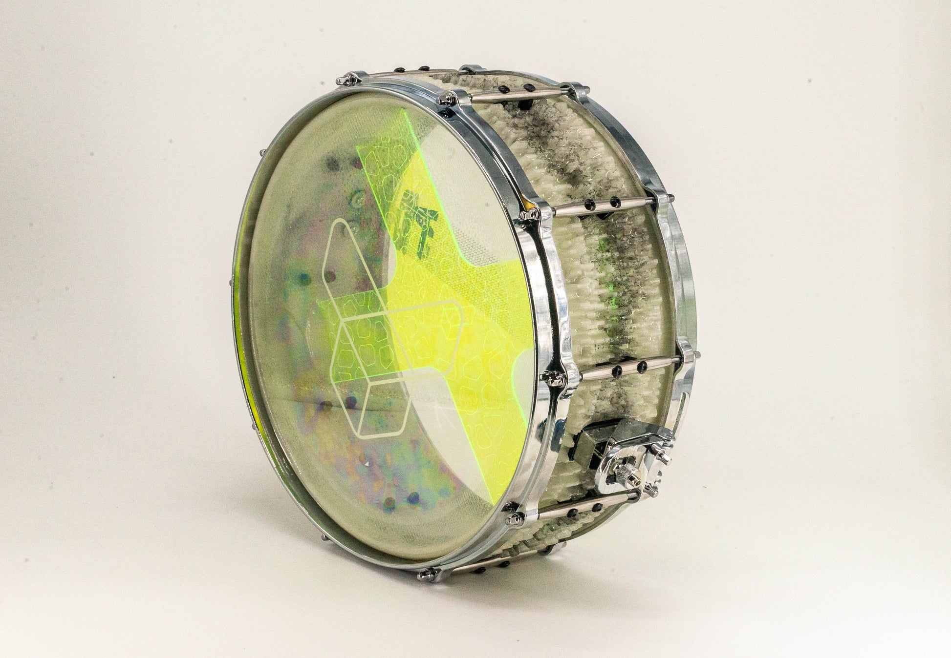 Transform your sound with our revolutionary 3D-printed snare drum, where digital craftsmanship meets acoustic excellence. Our Beta snare in yellow gold from our CELLULAR series features our signature textured shell design, post-strengthened for superior durability and resonance.